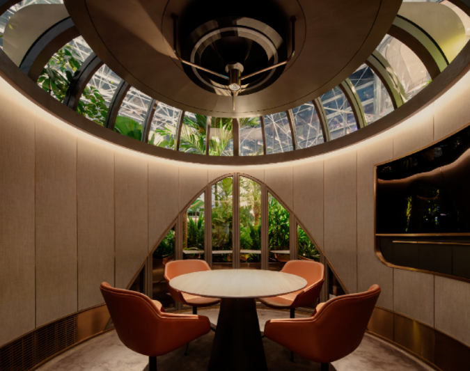 新加坡花旗銀行(Citibank)針對其全球最大的財富咨詢中心的設(shè)計,舉辦了一項國際邀請賽,事務(wù)所 Ministry of Design 拔得頭籌,以「biophilic design」為概念,創(chuàng)造了一間郁郁蔥蔥的“銀行溫室”。