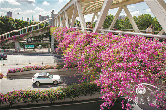 還是2003年,當時的三角梅在廣州還是“兩季有花,三季常綠”,花期為8月至10月。如今,已經升級為“四季有花,四季常綠”,練就了“開遍春夏與秋冬”的本領。目前,廣州已完成426座約335公里長的橋梁綠化。
